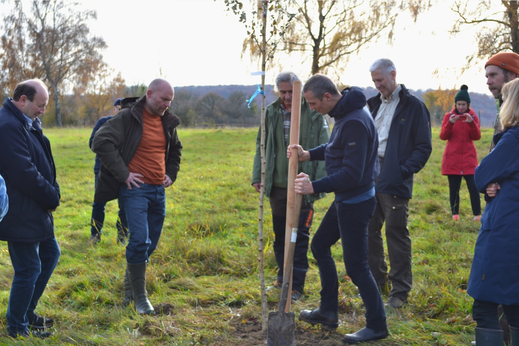 Le 13 novembre, natur&ëmwelt a.s.b.l. était présent à Hollenfels pour participer à cette nouvelle édition. Dans une ambiance conviviale la Fondation, les bénévoles, les partenaires, les membres du ministère de l’Environnement, du Climat et de la Biodiversité, le ministre de l’Environnement Serge Wilmes, ainsi que l’Administration de la nature et des forêts (ANF) se sont réunis pour planter des haies, des arbres forestiers, des arbres solitaires et des arbres fruitiers de variétés anciennes, quatre projets qui contribuent à la préservation de la biodiversité luxembourgeoise.