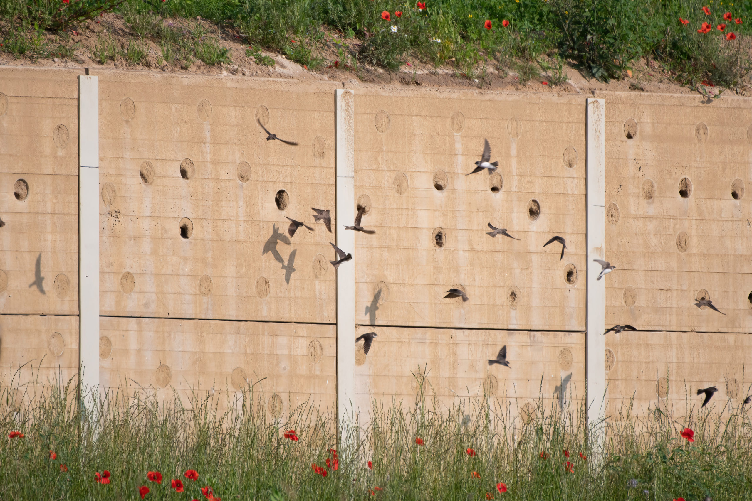 Des pentes abruptes se forment naturellement sur les rives des ruisseaux et des rivières. La rectification des cours d’eau détruit cet habitat, ce qui provoque une pénurie importante de logements pour la plus petite espèce d’hirondelle. Celles-ci dépendent donc des remblais de sable artificiels, comme ceux que l’on trouve dans les gravières. Les 110 à 150 couples d’hirondelles de rivage vivant au Luxembourg se trouvent principalement dans la région de la Moselle, où l’on extrait du sable et du gravier. Des essais prometteurs ont également été lancés dans cette région pour aider les hirondelles de rivage à nicher à l’aide d’un mur de nidification artificiel.
