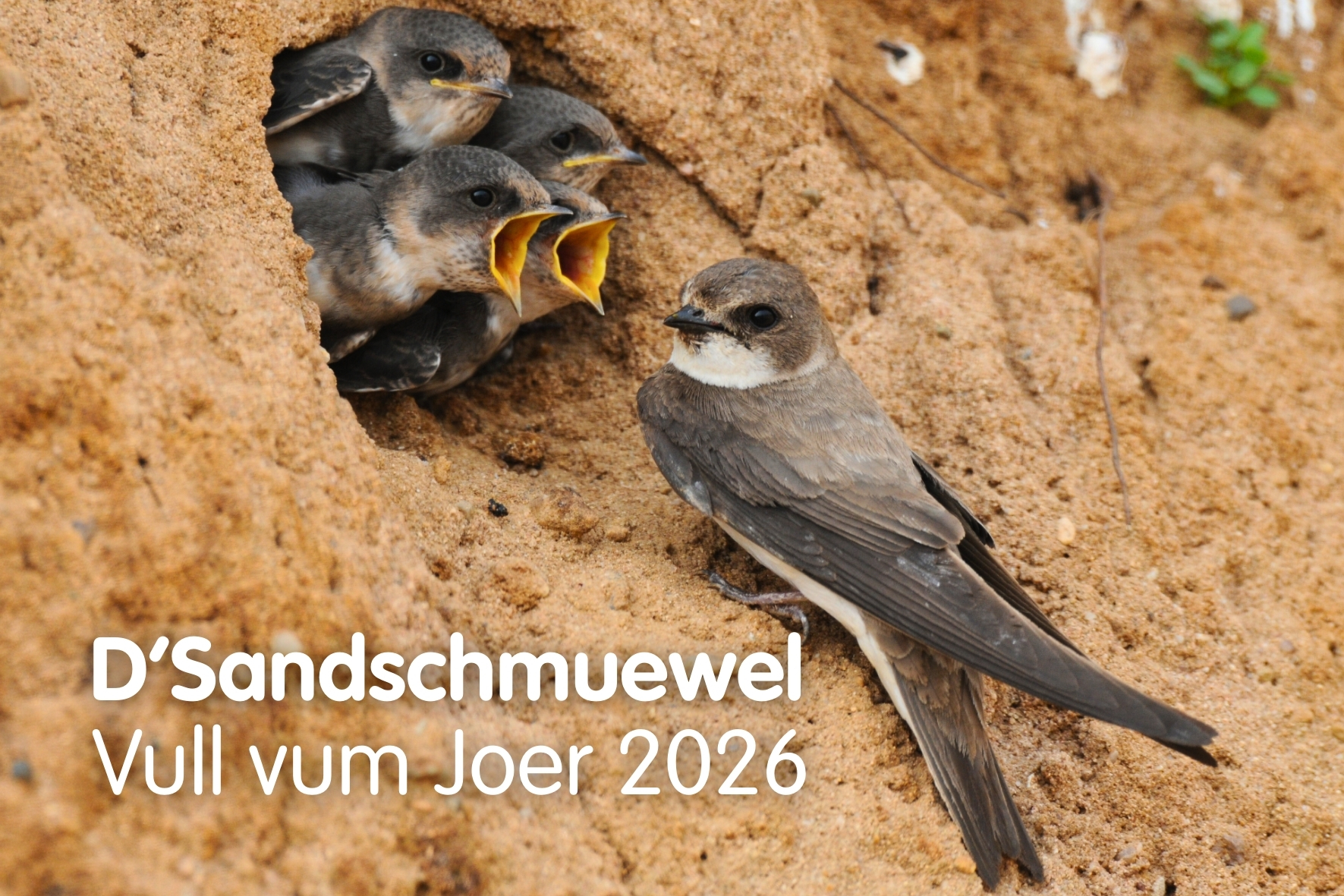 L’hirondelle de rivage, également appelée « Sandschmuewel » en luxembourgeois, a été élue « oiseau de l’année 2026 » par natur&ëmwelt.